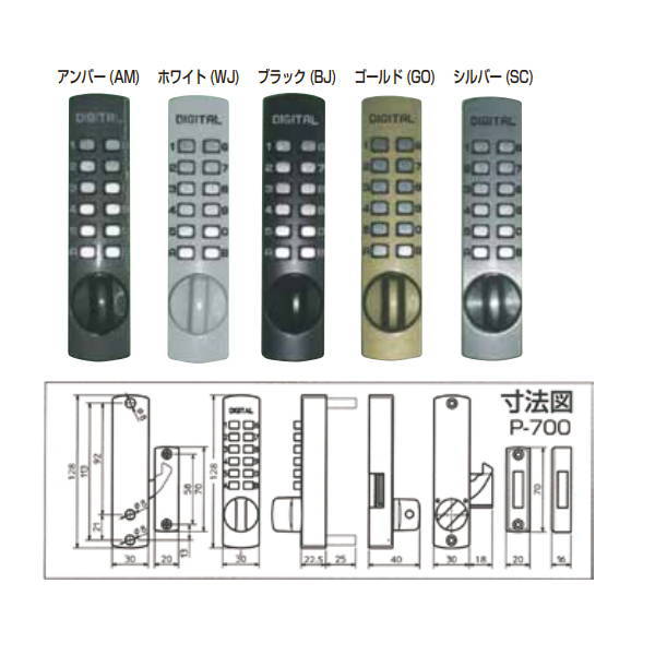 太幸 デジタルドアロック プッシュ式面付本締錠 開戸・引戸兼用 P-700