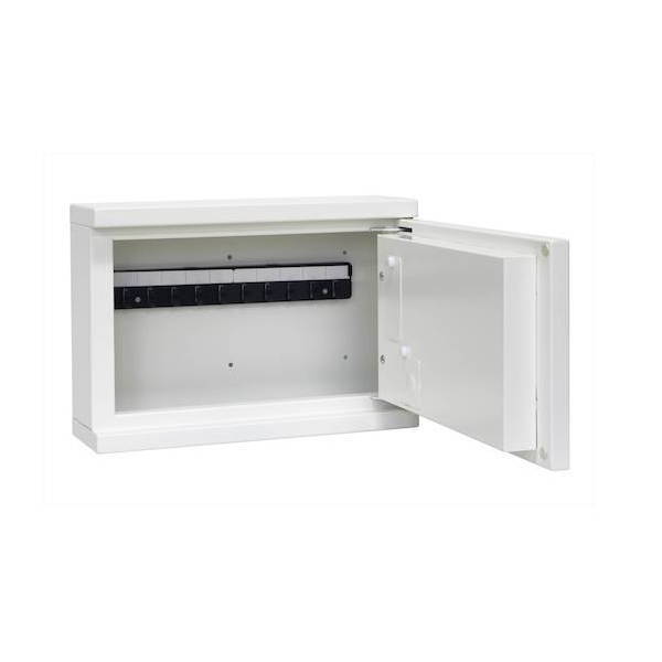 ICカードと暗証番号で鍵を管理。●履歴閲覧ソフト(別売)を使えば、扉の開閉履歴を記録し、パソコンで閲覧・印刷ができるほか、解錠できる時間帯の制限も可能です。 収容数:10個吊 外寸:幅360×奥146×高250mm 重量:7kg 電源:単3形アルカリ乾電池4本 解錠方法:ICカード+暗証番号,ICカード,暗証番号 1キーハンガー:本体側=10連×12キーハンガー 材質:電気亜鉛メッキ鋼板 単3形アルカリ乾電池4本,固定用ネジ6本,非常解錠キー2本付
