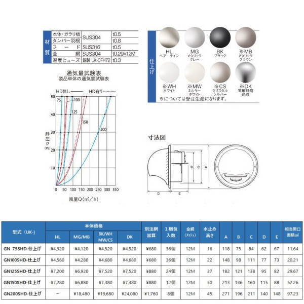 宇佐美工業 丸型フード付ガラリ 防火ダンパー付 GN100SHD-HL ヘアライン