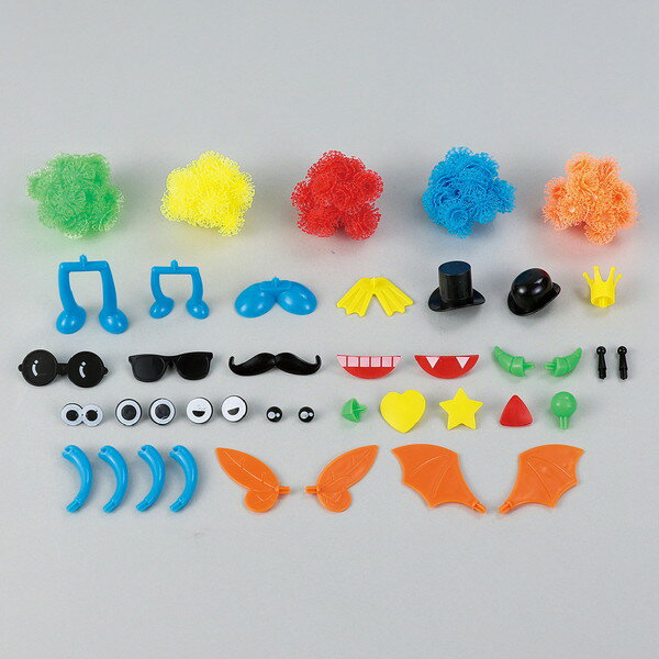 もじゃもじゃ楽しい!つなげて楽しい!新感覚ブロック! もじゃぴたブロックは、どこからでも簡単につなげられるユニークなもじゃもじゃブロックです。 緑、黄、赤、青、橙の5色の約100ピースを使って作品づくりを楽しめます。 目・鼻、メガネや帽子などのパーツも付属しているので、人や動物、面白いキャラクターまで自由自在に作れます。 子どもから大人まで楽しめる、新しいブロックです。 注意事項 パーツは色・種類取り混ぜになります。 商品サイズ(単位mm):1ピース:φ20mm セット内容:ブロック約100ピース 5色組(青・赤・黄・オレンジ・緑)、プラ製パーツ×36 1個重量(g):105 材質:PE、PP 1個包装形態:袋入り 包装サイズ(横×高さ×奥行)mm:W170×H180×D60mm 販売単位:個 本体色:ー 生産国:中国 箱の場合の入数:120●仕様・寸法・デザインについては予告なく変更されることがあります。 ●画像はイメージです。代表画像を使用することがあります。 ●ご返品、交換、発注後のキャンセルはできません。 ●都度お取り寄せ発注のため突然の欠品等がありましたら連絡させていただきます。