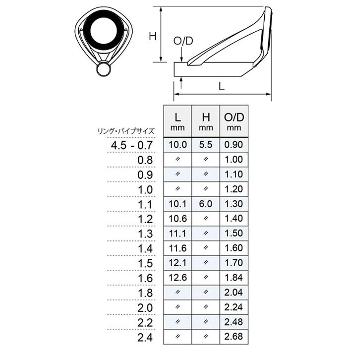 商品情報ご注意※モニター発色の具合により色合いが異なる場合がございます。※この商品は当店実店舗でも販売しております。在庫数の更新は随時行っておりますが、お買い上げいただいた商品が、品切れになってしまうこともございます。その場合、お客様には必ず連絡をいたしますが、万が一入荷予定がない場合は、キャンセルさせていただく場合もございますことをあらかじめご了承ください。※在庫がない場合メーカーより取り寄せになりますので、発送日に約1〜2週間程度お時間をいただく場合がございます。メーカー在庫切れの場合は、上記より長くお時間がかかる場合がございますので、お急ぎの場合はご注文前にお問い合わせいただけますと幸いです。梱包について当店の梱包はお客様に少しでもお安い価格でお届けできるよう、ダンボールをリユースするなど簡素な梱包になっております。何卒ご理解ご協力を賜りますようお願い申し上げます。KGトップガイド T-KGST4.5 パイプサイズ0.7〜2.4 富士工業 Fuji工業 ハイテンシルチタンフレーム ステンレスパイプ SiCリング J型 アロワナトップ 傾斜ブリッジ 最軽量トップガイド 糸絡みしにくい fuji スピニング ベイトキャスティング 両用 Fuji史上最軽量級 高強度フレーム ロッドパーツ ロッドビルディングパーツ ロッドビルディング 釣り フィッシング 釣具 釣り具 釣竿 釣り竿 ロッド ロッドメイキング ロッドビルド 富士工業(Fuji工業)KGトップガイド(アロワナトップ)糸絡みしにくい傾斜ブリッジつきの最軽量トップ。リングの高さがティップガイドと揃う。スピニング・ベイトキャスティング両用●仕様 ・深絞りフレーム ・ハイフレームトップ ・3D構造による糸絡み自動解除機能 ・各クラスFuji史上最軽量級かつ高強度フレーム【商品詳細】●T-KGST4.5●リングタイプ:SiCリングJ型●リングサイズ:4.5●リング外径:3.9mm●リング内径:2.5mm●リング幅:1.3mm●パイプサイズ: 0.7 0.8 0.9 1.0 1.1 1.2 1.3 1.4 1.5 1.6 1.8 2.0 2.2 2.4●素材 フレーム:ハイテンシルチタン(チタン合金) パイプ:ステンレス【商品サイズ】T-KGST4.5-0.7T-KGST4.5-0.8T-KGST4.5-0.9T-KGST4.5-1.0T-KGST4.5-1.1T-KGST4.5-1.2T-KGST4.5-1.3T-KGST4.5-1.4T-KGST4.5-1.5T-KGST4.5-1.6T-KGST4.5-1.8T-KGST4.5-2.0T-KGST4.5-2.2T-KGST4.5-2.4 2