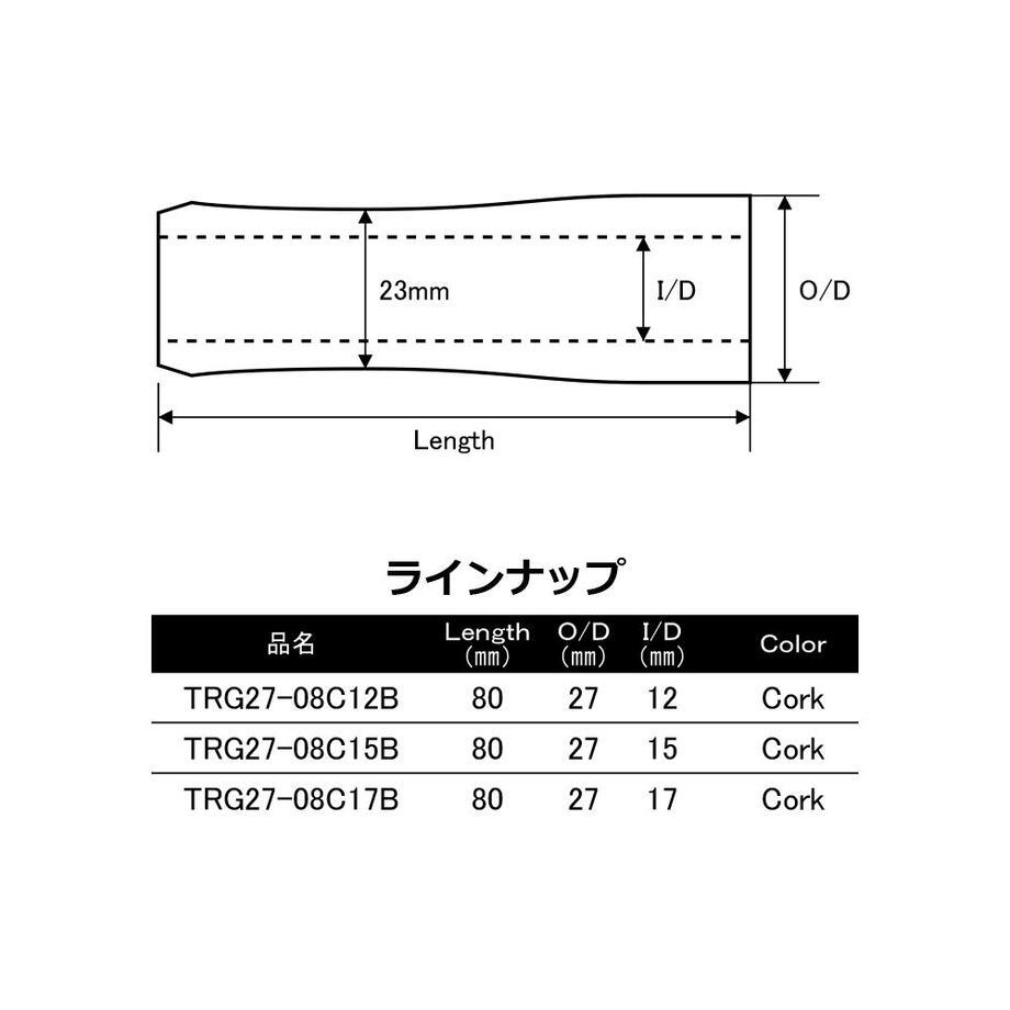 TRG27-08C(B) series 内径12.0mm/15.0mm/17.0mm セパレート シェイプドリアグリップ コルクグリップ 全長80mm 外径27.0mm セパレート用 パイプシート ジャストエース JUSTACE ファイブコア コルク Cork リールシート グリップ 釣り ロッドビルディング