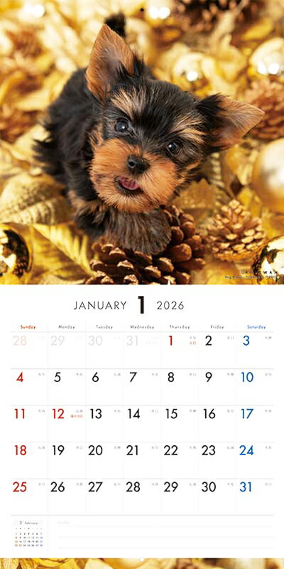 [公式]PICTWANカレンダー 2026年【L判】ヨークシャー・テリア【送料無料】かわいい 犬 子犬 いぬ 壁掛け 犬種別 カレンダー ヨーキー ヨークシャテリア YORKSHIRE TERRIER