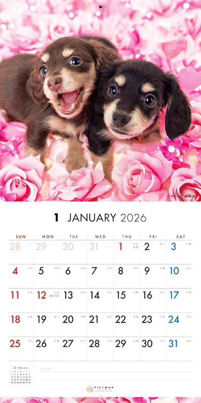 [公式]PICTWANカレンダー 2026年【S判】ダックスフンド【ゆうパケット可】