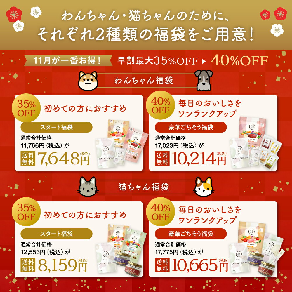 【11月限定 早割最大40%OFF】犬猫生活 福袋 わんちゃん 猫ちゃん 福袋 犬 猫 デンタルふりかけ ドッグフード キャットフード 最大14品 スタート福袋 豪華ごちそう福袋