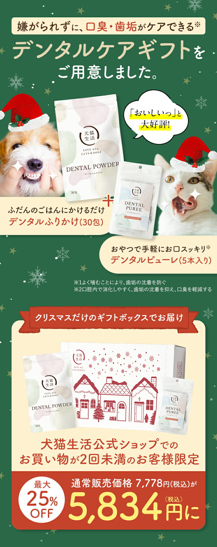 【最大25%OFF】デンタルふりかけ デンタルケア 犬 猫 歯磨き デンタルピューレ 犬猫生活 公式 クリスマス ギフト ボックス 付き
