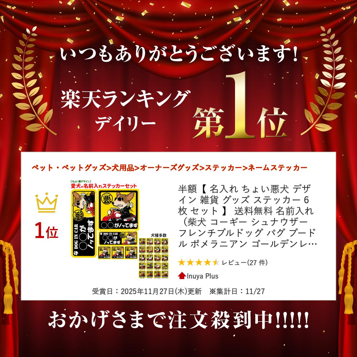 ご好評いただいております【】犬がノッてるステッカーの名入れステッカー仕様です。 車はもちろん、パソコンやキャリーケース、携帯、水筒、自宅のポストやバリケンや犬小屋のネームとして。 文字も自由度が増しました。 通常のノッてますステッカーサイズより全て1回り大きいサイズとなっております。 また、犬種名入りのノッてますステッカーでこの数を購入したとしても合計3,780円となりますので 名入れもして、1セット3,980円はとっ~てもお買い得(^-^) ★セット内容 ・115mm×115mm 1枚 ・190mm×71mm 1枚 ・110mm×41mm 1枚 ・36mm×36mm 3枚 合計6枚 ※長方形ステッカーには【DOG IN CAR】の文字は有りか無しを用途に合わせてお選びください。 ※「ノッてます」文字に関しましても、有り無しをご選択いただけます。 ★ステッカーの仕様 【素材】 塩ビシート 【インク】 耐水性インク 【耐候性の目安】 UVラミネート加工済みなので3~4年程度 【用途】 防水加工済み 野外貼り付け可能 【製作期間】 土日を除く5日~1週間 【配送】メール便 【マグネット加工について】 別途費用にて、正方形115mmステッカーと190mmステッカーのみマグネット加工が可能です。 加工をご希望される場合は、加工チケットを一緒にお買い求めくださいませ。 ◇こちらもチェック♪ 【ちょい悪デザイン一覧】 秋田犬 アメリカンコッカースパニエル イングリッシュコッカースパニエル イタリアングレーハウンド ウェスティー キャバリア グレートピレニーズ ケアンテリア コーギー ゴールデンレトリバー 雑種 シェルティー 柴犬 シベリアンハスキー ジャックラッセルテリア ジャーマンシェパード シュナウザー シーズー セントバーナード ダックスフンド ダルメシアン チワワ 狆 ドーベルマン 日本スピッツ ニューファンドランド パグ パピヨン バーニーズ ビションフリーゼ ビーグル フラットコーテッドレトリバー フレンチブルドッグ フレブル ブルドッグ プードル ペキニーズ ボストンテリア ポメラニアン ボルゾイ ボーダーコリー マルチーズ ミニチュアピンシャー ヨークシャテリア ラブラドールレトリバー ロットワイラー ワイマラナー ワイヤーフォックステリア ペット ドッグ わんこ dog オリジナルプリント ブランド 激安 安い 選べる 誕生日 オリジナル オーダーメイド おしゃれ シンプル バースデー プレゼント ギフト お祝い 御祝い 記念日 記念品 バレンタインデー ホワイトデー 母の日 父の日 敬老の日 クリスマス 小型犬 中型犬 大型犬 犬雑貨 犬グッズ★プリントと品質につきまして★楽天スーパーセール半額商品 犬 名入れ