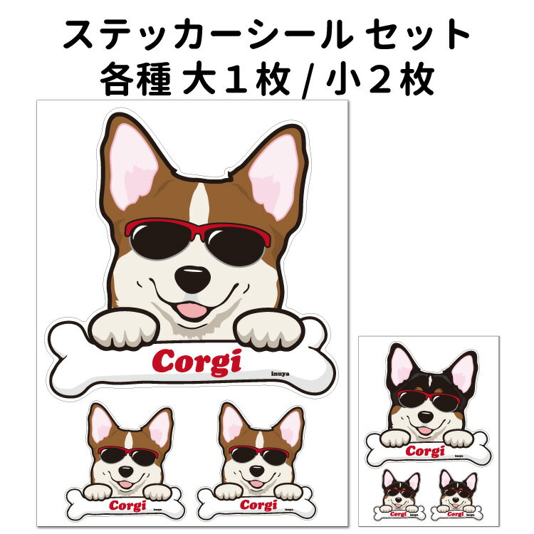 【 コーギー ボーンチャーム ステッカー 12cm1枚 5cm2枚 セット 】 雑貨 グッズ骨 中型犬 犬 車 バイク スーツケース 給油口 傷 隠し などに おしゃれ な 犬屋 オリジナル ステッカー