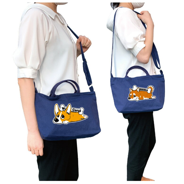 くたいぬ「カラー」 ショルダーバッグ 新トートバッグ Sサイズ 名入れ オプション あり (雑貨 グッズ 犬 お散歩バッグ 柴犬 コーギー シュナウザー フレンチブルドッグ パグ プードル ポメラニアン ゴールデンレトリーバー ダックス)