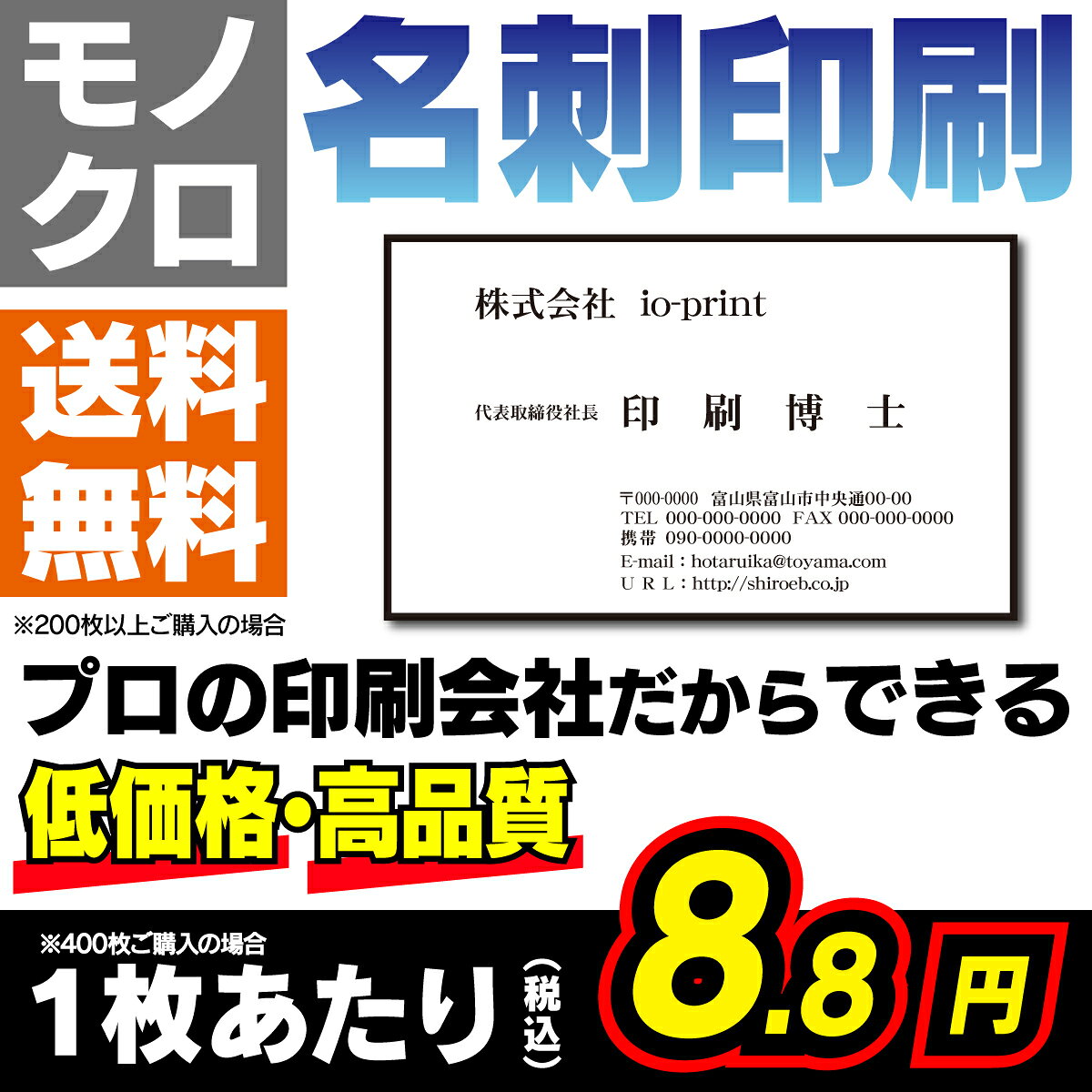 【印刷会社が作る名刺】【白黒】名刺 名刺作成 デザイン シンプル 100枚 即日納品 データ入稿印刷も可能 シンプル ビジネス 営業 店舗