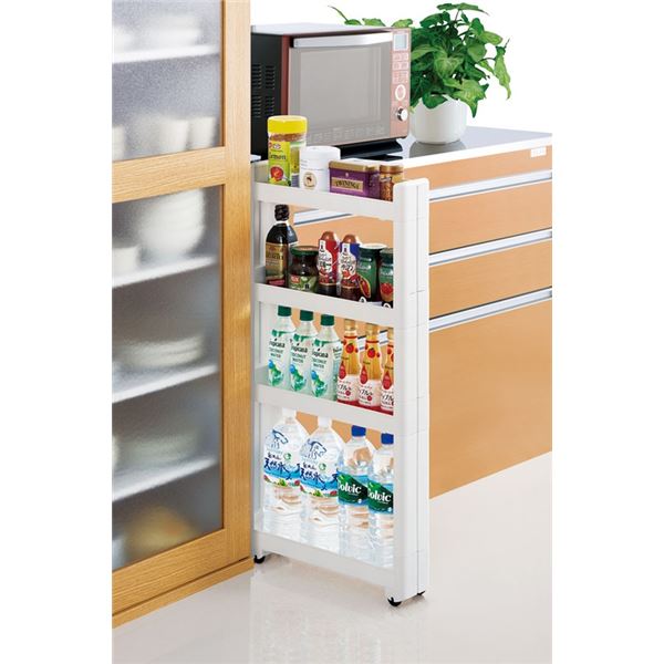 ■サイズ・色違い・関連商品■3段■4段【当ページ】関連商品の検索結果一覧はこちら■商品内容わずかなすき間を小物収納庫に!どこにでもあるわずかなデッドスペースに調味料やボトル類をすっきり収納。まっすぐ動くコロ付なので、引出しの間隔で出し入れできます。側板が目隠しになり、たっぷり収納してもスッキリ見えます。食器棚横、冷蔵庫・シンク横にオススメ。キッチン以外でもリビングやランドリー収納、トイレ収納としても◎ご自宅の食器棚や冷蔵庫、シンクなどのサイズに合わせて最適なサイズをお選びいただけます。■商品スペック【サイズ(約)】幅10.5×奥行45×高さ88.5cm【材質】ポリプロピレン【カラー】ホワイト■送料・配送についての注意事項●本商品の出荷目安は【2 - 6営業日 ※土日・祝除く】となります。●お取り寄せ商品のため、稀にご注文入れ違い等により欠品・遅延となる場合がございます。●本商品は仕入元より配送となるため、沖縄・離島への配送はできません。