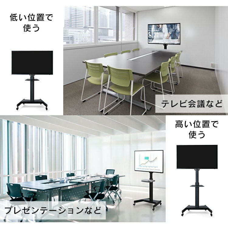 テレビスタンド UTS-S8718S 送料無料 ディスプレイスタンド スタンド 高さ調節 角度調節 ディスプレイ 会議 キャスター付き コードフォルダー ストッパー プレゼンテーション
