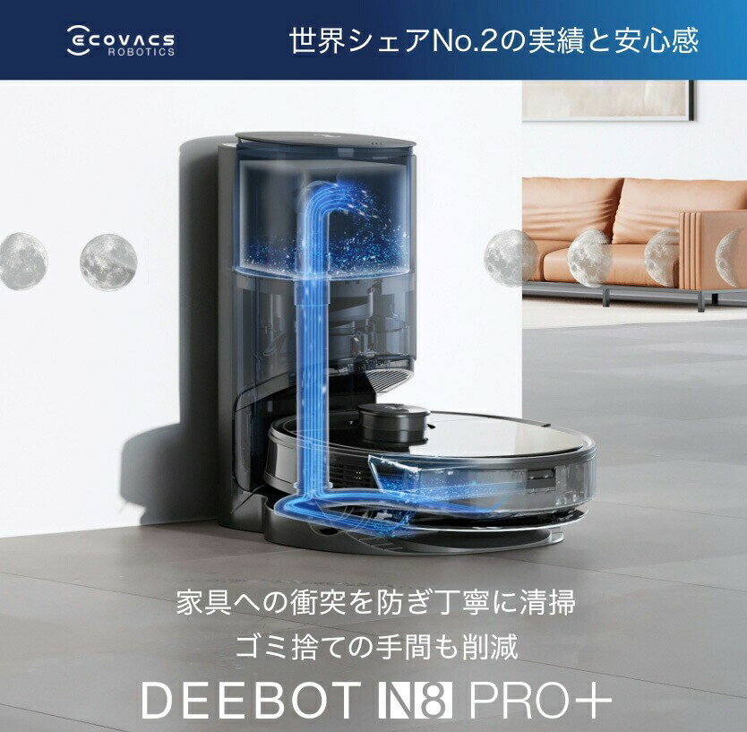 ロボット掃除機 エコバックス 水拭き 拭き掃除 お掃除ロボット 自動ゴミ収集 吸引 両方 水拭き DEEBOT N8+ エコバックス お掃除ロボ お掃除ロボット クリーナー ロボットクリーナー 掃除機 高性能 自動ゴミ 収集 ロボット 掃除機 クリーナー 自動
