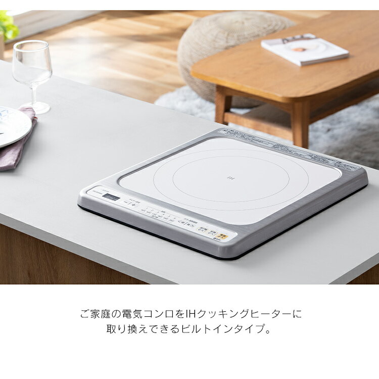 ※この商品は適切な電気工事と設置が必要です※電気コンロからの置き換えに最適な1口ビルトインIHクッキングヒーターです。ミニキッチンでも簡単に取替えが可能な100Vタイプです。(※取り付け工事は必要です。)加熱調理から揚げ物まで多用途に使え、煮込み料理に便利なタイマー機能付き(1分〜9時間50分)です。火を使わないのでキッチンの温度が上がりにくく快適にお料理することが出来ます。【5つの安全機能】◆なべなし検知機能/小物検知機能使えないなべを置いて加熱をした場合、なべを載せないで加熱をした場合、スプーンなどなべ以外の小物を置いて加熱をした場合、エラーを表示して加熱を停止します。◆内部回路過熱防止機能内部の温度が上がるとランプが点滅して加熱を停止します。電源を切り、本体が冷えるのを待ってから使用してください。◆トッププレート過熱防止機能トッププレートの温度が上がると、エラーを表示して加熱を停止します。◆揚げ物鍋そり検知機能底のそりが大きいなべを使用して揚げ物調理をすると、エラーを表示して、加熱を停止します。◆切り忘れ防止機能調理を始めて約45分ボタン操作をしないと、「ピッ♪」の音の後加熱を停止し、その後電源が切れます。※本商品の設置には別途工事が必要です。●電源AC100V(50/60Hz共用)●定格消費電力1400W●製品寸法(cm)幅約31.0×奥行約36.1×高さ約7.6(本体)●製品重量約2.9kg●電源コード長さ70cm、2芯ゴム平行ケーブル●電源プラグ2極、125V、15A●火力調節加熱調理:6段階(火力) 80W相当〜1400W揚げ物調理:6段階(油温) 約150〜200℃●タイマー1分〜9時間50分●加熱調理モード6段階(約1400W、約1000W、約700W、約500W、約200W相当、約80W相当)●揚げ物調理モード6段階(約200、約190℃、約180℃、約170℃、約160℃、約150℃)●使用可能な鍋の材質・鉄、鉄鋳物・鉄ほうろう ※ほうろうなべは、空だきしたりこげつかせないようにする。底面のほうろうが溶けて焼き付き、トッププレートを損傷することがあります。・ステンレス18-0(SUS430)など ※種類によっては火力が弱くなったり、使えないなべもあります。・多層鋼なべ ※種類によっては発熱しないものがあります。●使用可能な鍋の形状底が平らで反りが3mm以下のなべ(揚げ物調理のときは、反りが0.5mm以下のなべ使用)●使用可能な鍋の大きさ加熱調理:直径12〜26cmのもの揚げ物調理:直径18〜26cmのもの(検索用:IHクッキングヒーター・IH・1口・IHコンロ・コンロ・クッキングヒーター・IHヒーター・ビルトイン・1口・工事・電気・キッチン家電・調理・タイマー・新生活・4967576701143・4967576701167・アイリスオーヤマ) 最強翌日配送対象商品に関するご案内 最強翌日配送対象商品・対象地域に該当する場合は最強翌日配送マークがご注文カゴ近くに表示されます。 最強翌日配送可能なお支払方法は【クレジットカード、代金引換、全額ポイント支払い】のみとなります。 下記の場合は最強翌日配送対象外となります。 ●15点以上ご購入いただいた場合 ●時間指定がある場合 ●ご注文時備考欄にご記入がある場合 ●決済処理にお時間を頂戴する場合 ●郵便番号や住所に誤りがある場合 ●最強翌日配送対象外の商品とご一緒にご注文いただいた場合 ●お届け先住所文字数が40文字以上の場合お届け先が沖縄・離島の場合、お届け日時のご希望に沿えない場合がございます。予めご了承ください。 ▼雑草が生える前の今がチャンス! \”朝食”がもっと楽しみになる調理家電特集!/