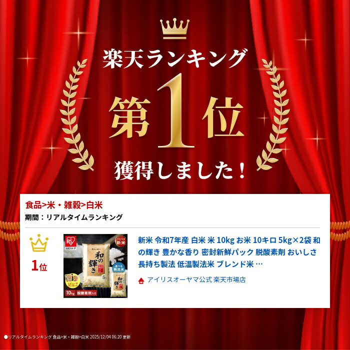 新米 令和7年産 白米 米 10kg お米 10キロ 5kg×2袋 和の輝き 豊かな香り 密封新鮮パック 脱酸素剤 おいしさ長持ち製法 低温製法米 ブレンド米 精米 コメ ご飯 ストック まとめ買い アイリスオーヤマ アイリスフーズ *