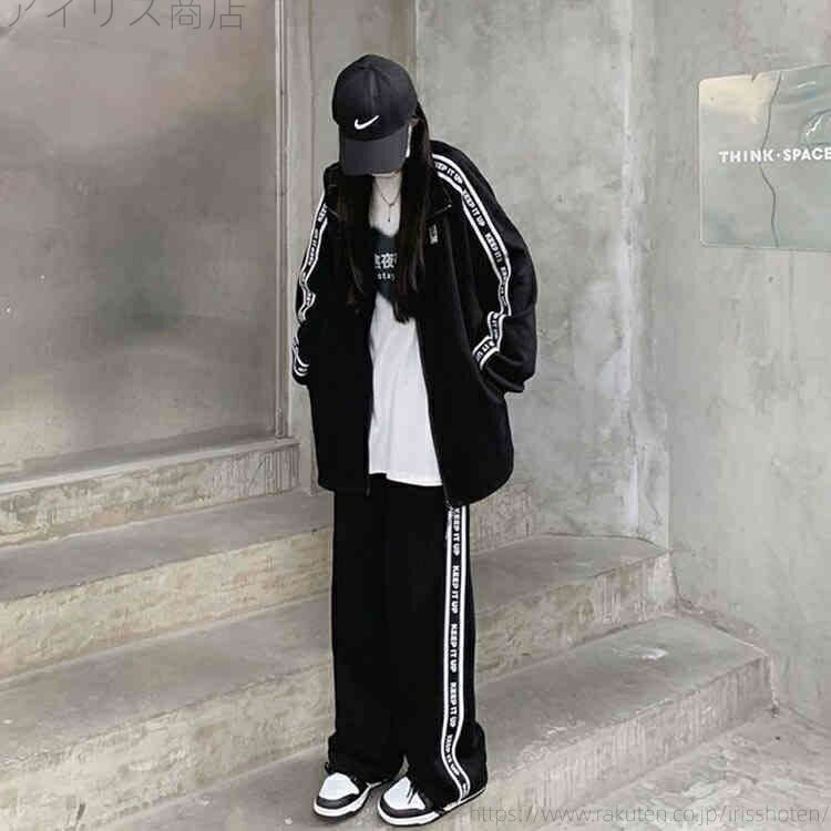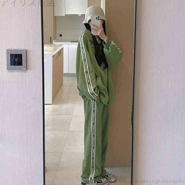 送料無料 ジャージ 上下セット レディース スポーツウェア 春 秋 長袖 パーカー トップス パンツ 2点セット ジャージ セットアップ サイドライン 英字ロゴ おしゃれ 大きいサイズ ゆったり