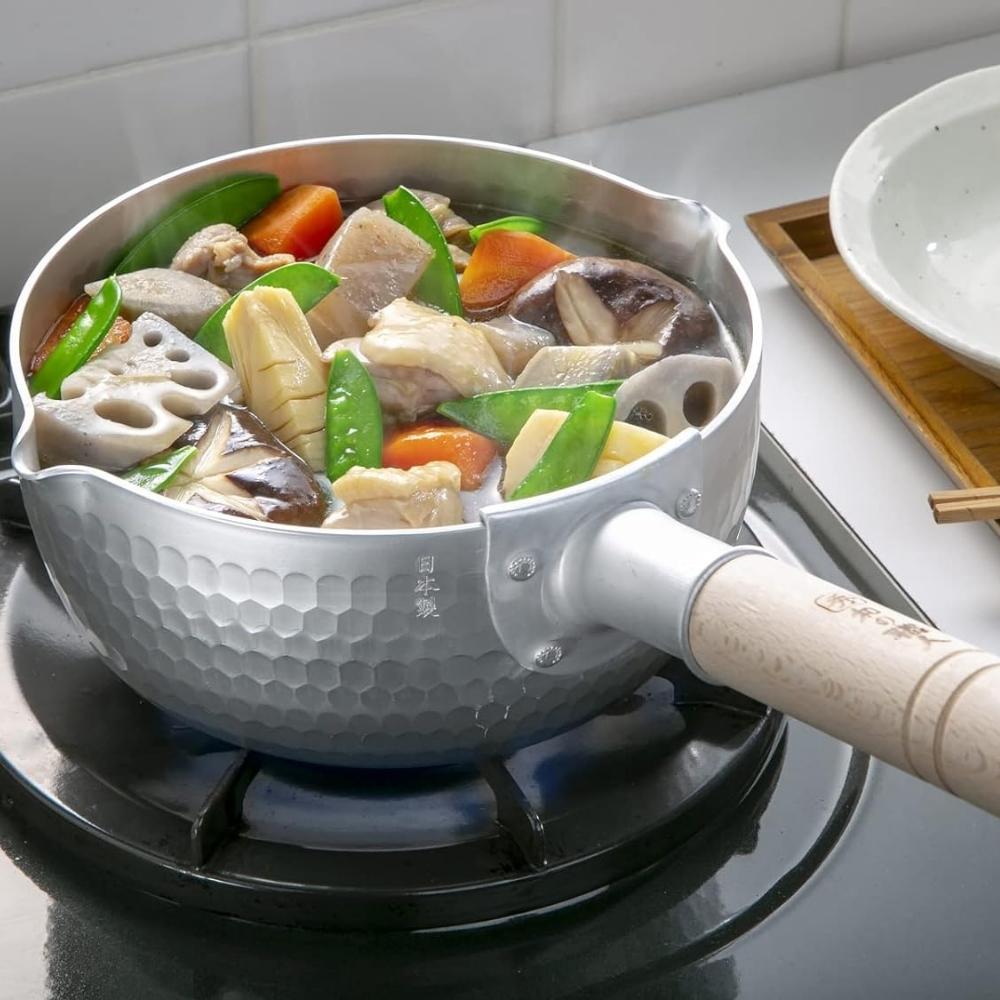 商品概要谷口金属 和の職人 深型 ゆきひら鍋 20cm 鍋 片手鍋 雪平鍋 アルミ 「商品説明」 ・厚板仕様の強度に優れたゆきひら鍋、変形しにくく長持ちします ・伝統的な槌目加工技術による強度と耐久性 ・アルマイト皮膜加工で腐食や耐食性に優れ、安心して使用できます ・持ち手ハンドルに天然木材を使用し、手に馴染む設計 ・ガス火専用で、多様な料理に対応する万能鍋です ・日本製、職人による丁寧な手仕事で仕上げられた品質 「特徴・品質」 ・日本製、手作業による精密な加工 ・板厚2.2mmのアルミニウム合金製で高い耐久性 ・アルマイト加工による耐摩耗性と耐食性 「仕様」 ・サイズ: 約365×225×124mm ・満水容量: 2.6L ・重量: 約475g ・素材: アルミニウム合金、天然木 ・色: シルバー ・表面処理: アルマイト加工 ・板厚:2.2mm ・生産国:日本 ・対応熱源:ガス火専用 (※IH・オーブン・電子レンジ・食洗機 使用不可) 「機能」 ・多用途に適したデザイン ・注ぎ口と目盛りで使い勝手が良い ・耐久性と蓄熱性に優れた構造 「使用・手入れについて」 ・手洗い推奨、金属ヘラの使用は避ける ・ハンドル交換可能で、長期使用に適している 注意事項 ・実物に近い色を画像で表現していますが、撮影環境、お使いのディスプレイなどの条件によって多少の誤差が生じる場合がございます。 ・ご注文タイミングやご注文内容によっては、購入履歴からのキャンセル、修正を受け付けることができない場合がございます。 ・複数の同時注文がおきた場合、システムのタイムラグの理由から、在庫切れの状態でも購入が可能となる場合がございます。その場合、こちらからメールでご連絡させて頂きます。 関連商品 おすすめ特集