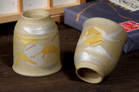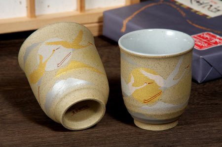 九谷焼 湯呑 夫婦湯呑 組湯呑 金銀彩鶴 和食器 ペア 湯のみ ゆのみ 湯飲み 湯呑み 人気 ギフト セット 贈り物 結婚祝い 内祝い お祝い 湯呑