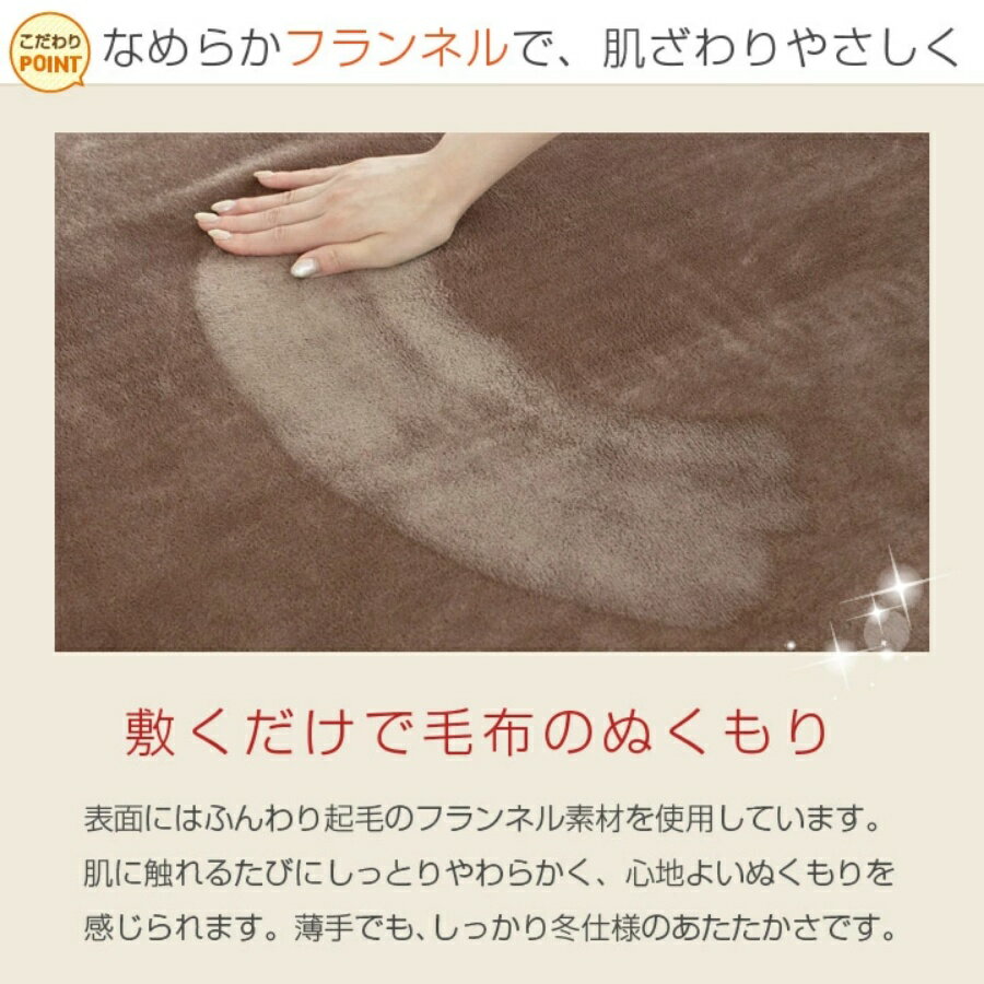 乾きやすい生地感で、こまめなお手入れもスムーズ。洗い替え用にもおすすめです。 商品ポイント ★乾きやすい生地感で、こまめなお手入れもスムーズ。洗い替え用にもおすすめです。 ★やわらかくしっとりとした肌触りのフランネル素材を使用した冬用敷きパッド。 ★高い保温性で布団に入った瞬間からあたたかく、寒い季節の快眠をサポートします。 ★抗菌防臭加工を施しているため、衛生的で安心。さらにご家庭で丸洗いできるウォッシャブル仕様でお手入れも簡単です。★四隅にはゴムバンド付きで敷布団にもベッドマットレスにもぴったりフィット。 ★軽量で取り付け・取り外しもラクラクです。 ★サイズはシングル・セミダブル・ダブルの3種類から選べ、豊富なカラーバリエーションでお部屋の雰囲気にも合わせやすいデザイン。 ★冷え性の方や冬の寒さ対策にもおすすめの敷きパッドです。 商品サイズ・組成について (リバーシブル 敷きパッド) ●サイズ シングル :100 x 200 cm セミダブル: 120 x 200 cm ダブル :140 x 200 cm ●組成 毛羽部分ポリエステル100% グランド部分ポリエステル100% メーカー希望小売価格はメーカーカタログに基づいて掲載しています▼関連おすすめ商品▼