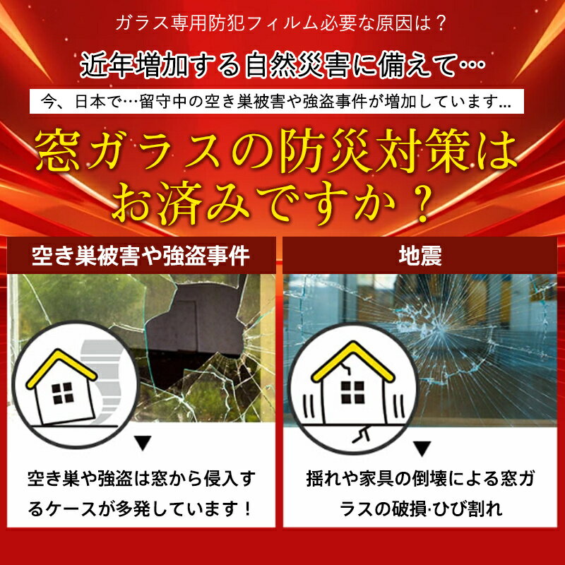 防犯フィルム 窓ガラス 2枚セット 透明 ガラス専用防犯フィルム 飛散防止 フィルム 20cm×100cm 30cm×100cm 80cm×100cm ガラス飛散防止 防災グッズ 地震対策 ガラス破り対策 防犯 窓ガラス