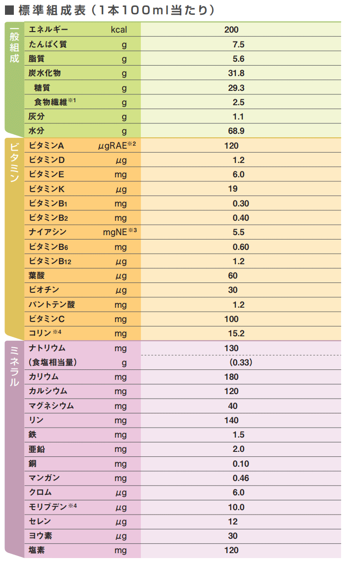 コーヒー味、バナナ味、ストロベリー味、ミックスフルーツ味、コーンスープ味、ピーチ味の6種類の味明治メイバランスMiniシリーズのコンパクト100mlタイプ 1本(100ml)で200kcalの少量高エネルギー設計。 少量でおいしく栄養補給ができます。 バランスの良い栄養組成 1本あたりたんぱく質7.5g、亜鉛2.0mg、食物繊維2.5gを配合。 エネルギーバランスは明治メイバランスMiniシリーズと同じです。 (脂質エネルギー比:25.2%) 6種類のラインナップ コーヒー味、バナナ味、ストロベリー味、ミックスフルーツ味、コーンスープ味、ピーチ味の6種類の味で食事をサポート。 包装 100ml×6種類×4本=24本 原材料 [コーヒー味] 液状デキストリン(国内製造)、デキストリン、食用油脂(なたね油、パーム分別油、V.K2含有食用油脂)、乳たんぱく質、難消化性デキストリン、砂糖、酵母、カフェインレスコーヒー、食塩/カゼインNa、pH調整剤、カラメル色素、乳化剤、塩化K、V.C、炭酸Mg、香料、グルコン酸亜鉛、V.E、硫酸鉄、ナイアシン、パントテン酸Ca、V.B6、V.B1、V.B2、V.A、葉酸、V.B12、V.D、(一部に乳成分・大豆を含む) [バナナ味] 液状デキストリン(国内製造)、デキストリン、食用油脂(なたね油、パーム分別油、V.K2含有食用油脂)、乳たんぱく質、難消化性デキストリン、砂糖、酵母、食塩/カゼインNa、pH調整剤、乳化剤、塩化K、V.C、香料、炭酸Mg、グルコン酸亜鉛、V.E、硫酸鉄、ナイアシン、甘味料(スクラロース)、パントテン酸Ca、V.B6、V.B1、V.B2、V.A、葉酸、V.B12、V.D、(一部に乳成分・大豆を含む) [ストロベリー味] 液状デキストリン(国内製造)、デキストリン、食用油脂(なたね油、パーム分別油、V.K2含有食用油脂)、乳たんぱく質、難消化性デキストリン、砂糖、酵母、食塩、濃縮いちご果汁/カゼインNa、pH調整剤、乳化剤、香料、塩化K、V.C、炭酸Mg、紅麹色素、酸味料、グルコン酸亜鉛、V.E、硫酸鉄、ナイアシン、甘味料(スクラロース、ステビア)、パントテン酸Ca、V.B6、V.B1、V.B2、V.A、葉酸、V.B12、V.D、(一部に乳成分・大豆を含む) [ミックスフルーツ味] 液状デキストリン(国内製造)、デキストリン、食用油脂(なたね油、パーム分別油、V.K2含有食用油脂)、乳たんぱく質、難消化性デキストリン、砂糖、酵母、食塩/カゼインNa、pH調整剤、乳化剤、塩化K、V.C、炭酸Mg、香料、グルコン酸亜鉛、V.E、硫酸鉄、ナイアシン、甘味料(スクラロース)、パントテン酸Ca、V.B6、V.B1、V.B2、V.A、葉酸、V.B12、V.D、(一部に乳成分・大豆を含む) [コーンスープ味] 液状デキストリン(国内製造)、デキストリン、食用油脂(なたね油、パーム分別油、V.K2含有食用油脂)、乳たんぱく質、難消化性デキストリン、砂糖、酵母、食塩/カゼインNa、pH調整剤、調味料(無機塩等)、乳化剤、V.C、炭酸Mg、香料、グルコン酸亜鉛、V.E、硫酸鉄、ナイアシン、クチナシ色素、パントテン酸Ca、V.B6、V.B1、V.B2、V.A、葉酸、V.B12、V.D、(一部に乳成分・大豆を含む) [ピーチ味] 液状デキストリン(国内製造)、デキストリン、食用油脂(なたね油、パーム分別油、V.K2含有食用油脂)、乳たんぱく質、難消化性デキストリン、砂糖、酵母、食塩/カゼインNa、pH調整剤、乳化剤、塩化K、V.C、炭酸Mg、香料、グルコン酸亜鉛、V.E、硫酸鉄、ナイアシン、甘味料(スクラロース)、パントテン酸Ca、V.B6、V.B1、V.B2、V.A、葉酸、V.B12、V.D、(一部に乳成分・大豆を含む) アレルギー表示 本品に使用する原材料に含まれるアレルギー物質(特定原材料):乳成分 (特定原材料に準ずるもの)として、大豆を含む原材料を使用しています。 使用上の注意 ○医師・栄養士の指導にもとづいて使用されることをお勧めします。 ○静脈内等へは絶対に注入しないでください。 ○容器に変形・漏れ・膨張のあるもの、内容液に凝固・分離・悪臭・味の異常等がある場合は使用しないでください。 ○食事の代替として使用する場合は、必要に応じてビタミン・ミネラル・微量元素等の栄養素や水分を補給してください。 ○開封後はすぐにお召し上がりください。 ○長時間の加温や繰り返しの加温はしないでください。容器のまま直火や電子レンジにかけないでください。加温する場合は、未開封のままポリ袋等に入れ、お湯に浸してください。 ○原材料由来の成分が沈殿・浮上することがありますが、栄養的な問題はありません。開封前によく振ってください。 ○乳幼児・小児は本品の摂取を避けてください。