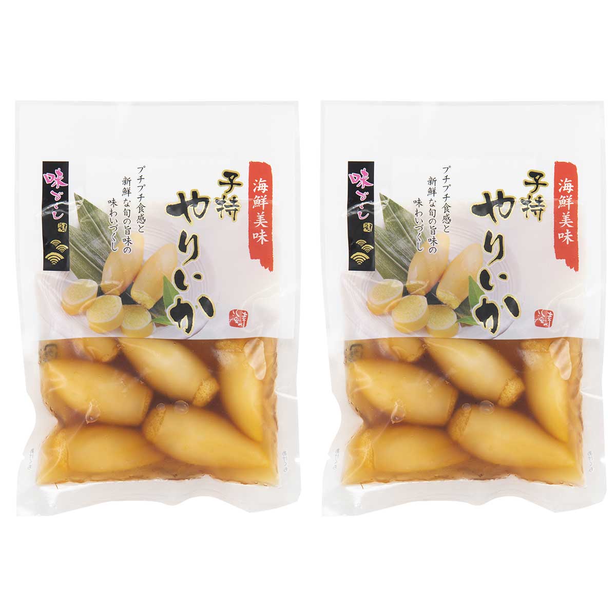 柔らかな身とぷちぷち食感 旨み豊かで柔らかいヤリイカの身に、ぷちぷちっと弾けるししゃも卵をぎっしりと詰め込みました。2つの食感のハーモニーが堪らない、バイヤー一押しの珍味です。出汁のきいた醤油ベースのさっぱりとした味付けも絶妙で、酒の肴にぴったり。後を引くおいしさで、ついもう一つ…と手が止まりません!柔らかな身とぷちぷち食感 旨み豊かで柔らかいヤリイカの身に、ぷちぷちっと弾けるししゃも卵をぎっしりと詰め込みました。2つの食感のハーモニーが堪らない、バイヤー一押しの珍味です。出汁のきいた醤油ベースのさっぱりとした味付けも絶妙で、酒の肴にぴったり。後を引くおいしさで、ついもう一つ…と手が止まりません! 子持ちやりいか 内容量 子持ちやりいか100g×2袋食塩相当量:2.4g/100g 原産地 いか魚卵詰め:マレーシア製造 賞味保証期間 冷凍180日、解凍後冷蔵14日 アレルギー表示 原材料の一部に、大豆・小麦・いか・ゼラチンを含む