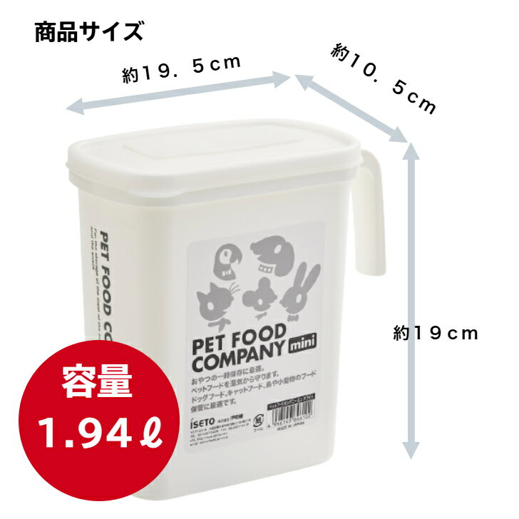 商品情報サイズ幅 19.5cm 奥行き 10.5cm 高さ 19cm容量 1.94L材質本体:ポリプロピレンフタ:ポリエチレン色ホワイト原産国日本(大阪)伊勢藤 (ISETO) ペットフードカンパニーミニ 容量 約2L フード400g密封 匂いもれ対策 おやつ入れ 日本製 丸洗い シール容器 取っ手付 かわいい キャットフード ドッグフード 小動物 鳥餌 【メーカー直営】 ドッグ、キャット、鳥や小動物のおやつ、フードの保管にお部屋にそのまま置いてもかわいい保存容器小分け袋をそのまま保存 5