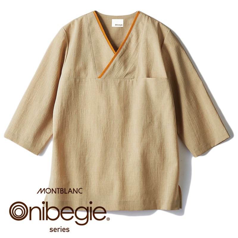 飲食店ユニフォーム ユニセックス プルオーバー 七分袖 OV6502 調理服 カットソー シャツ 和風 エスニック アジアン 制服 フード5色 ベーカリー 花屋 カフェ オーガニック MONTBLANC モンブラン [Onibegie] [和風]