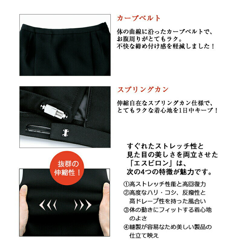 【カラー】 10(ネイビー)、20(ブラック) 【素材】 ウルトラストレッチ(複合繊維[ポリエステル]50%、ポリエステル50%) 【仕様】 洗濯機OK、ストレッチ、カーブベルト、すべり止めテープ、スプリングカン、両脇ポケット 高ストレッチ素材使用で、動きやすく快適に! ・ヤギコーポレーション / UNILADY(ユニレディ) ・事務服 / オフィスウェア / スーツ ・上品 / 女性用 / レディス ・ユニフォーム / 制服 / 仕事 / 人気サイズ 5号 7号 9号 11号 13号 15号 17号 19号 ウエスト 60 62 65 68 71 74 77 82 ヒップ 92 94 96 99 102 105 108 112 スカート丈 53 54 54 56 56 56 56 56 スカート丈は前中央が下がっているカーブベルトなので、 ウエストベルト上から裾までの長さとなっております。 【カラー】 10(ネイビー)、20(ブラック) 【素材】 ウルトラストレッチ(複合繊維[ポリエステル]50%、ポリエステル50%) 【仕様】 洗濯機OK、ストレッチ、カーブベルト、すべり止めテープ、スプリングカン、両脇ポケット 高ストレッチ素材使用で、動きやすく快適に! ・ヤギコーポレーション / UNILADY(ユニレディ) ・事務服 / オフィスウェア / スーツ ・上品 / 女性用 / レディス ・ユニフォーム / 制服 / 仕事 / 人気 タイトスカート U9336 フレアスカート U9338 Aラインスカート U9828 コーディネートや合わせ買いには同ブランドが断然オススメ!Check it out! UNILADY春夏 UNILADY秋冬オールシーズン ジャケット ジャケット ベスト ベスト ブラウス半袖・七分袖 ブラウス長袖 スカート・キュロット スカート・キュロット パンツ パンツ オーバーブラウス アクセサリー