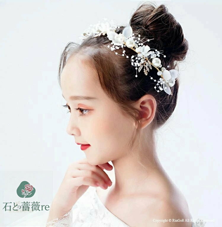 【送料無料】子供髪飾り リーフ パール 小花モチーフ カチューシャ ウエディング ヘッドドレス フラワーティアラ 女の子用 髪飾り 子供 ピアノ 発表会 ヘアアクセサリー 結婚式 誕生会 コンクール パーティー 七五三撮影 演奏会 卒業式コンクール お誕生日会 アクセサリー