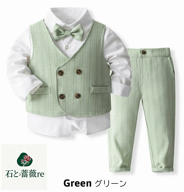 卒業式 スーツ 卒園式 入学式 男の子 4点セット ベビー ピアノ発表会 パンツスーツ キッズ フォーマル 長袖 カバーオール 1歳 2歳 5歳 6歳 ピアノ発表会 キッズ セットアップ 子供 紳士服 ズボン シャツ ベスト リボン 青 ブラウン 韓国 七五三 記念日 結婚式 撮影 80-120cm