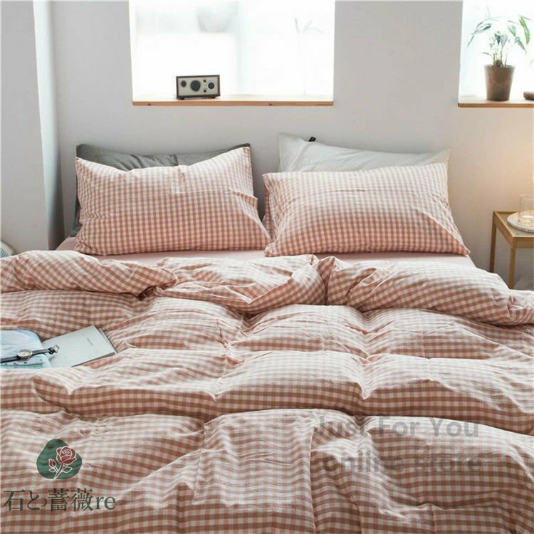 チェック柄 布団カバー シングル 100%綿 掛け布団カバー 姫系 おしゃれ 3点セット ベッド カバー オールシーズン コットン 寝具カバー(150cmX200cm)