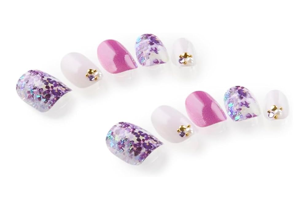 【日本製】ゆずネイル ネイルチップ ベリーショート つけ爪 短め シンプル 可愛い テープ (パープル,紫)