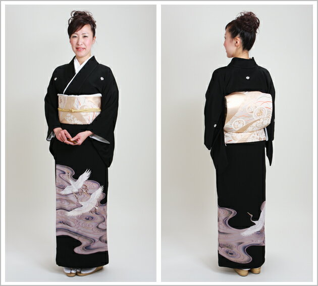 留袖はミセスの第一礼装です 商品詳細 【黒留袖レンタル】 ■表地:高級正絹100% 五ツ紋 ■裏地:比翼仕立合成繊維 ■柄:流水に翔鶴 ■年代:50〜70代の方にお勧めです ■洋服サイズ:5号〜9号位 ■身長:145cm〜163cm位 ■ヒップサイズ:〜95cm位 ■身丈:4尺1寸9分/肩裄:1尺7寸3分/袖丈:1尺3寸 ■紋:五三の桐 ※「帯・小物類」は、おまかせになります。 ※サイズなどについて詳しくは「貸衣装ネット便」までお気軽にお問い合わせ下さい。 ●TEL:06-4307-3737 ●メール:kashiisyou-nb@bbhamada.com