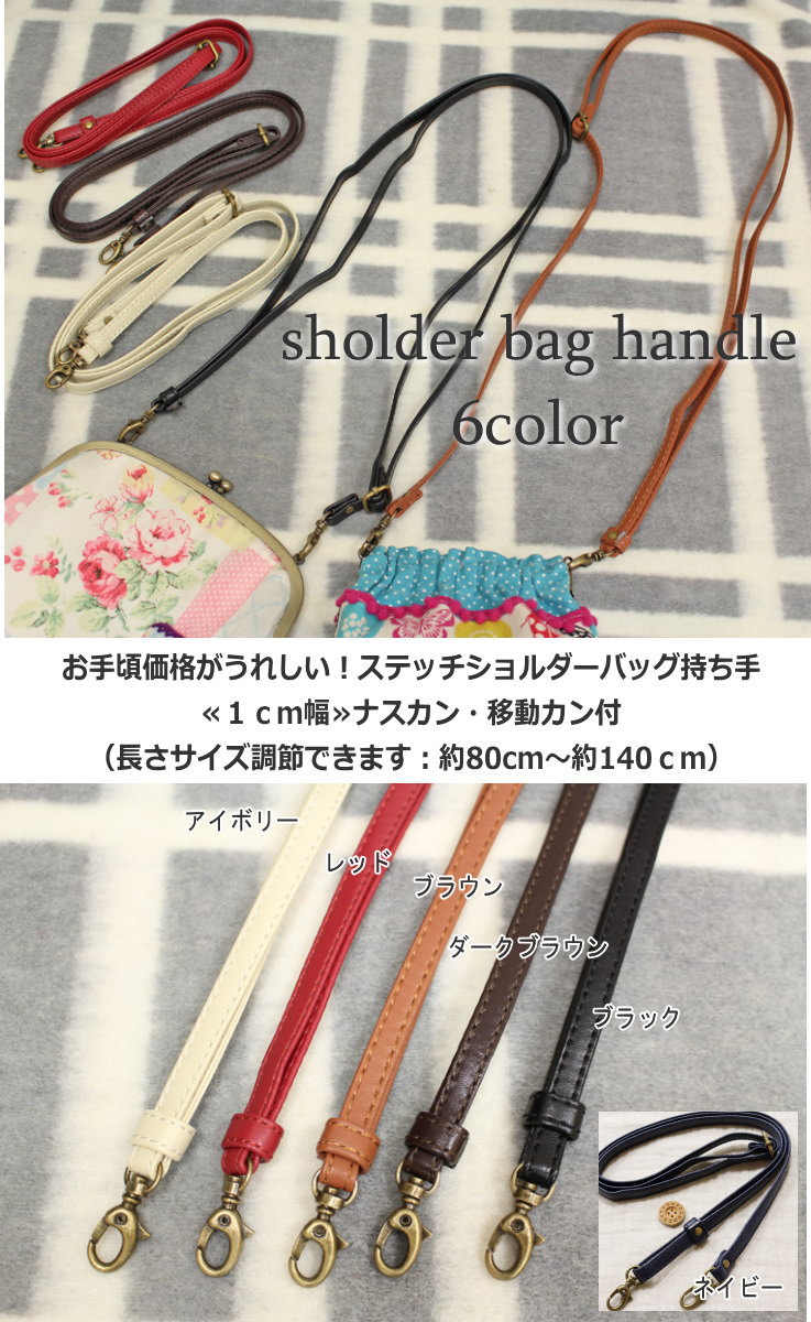 ステッチショルダーバッグ持ち手≪1cm幅≫ナスカン・移動カン付(長さサイズ調節できます:約80cm〜約140cm)