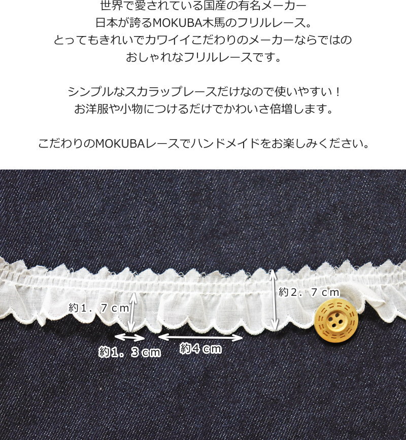 MOKUBA(木馬)フリルレース『スカラップ(60083T)』コットン100%フリルレース服飾/インテリア/ハンドメイド/手づくり/リメイク/【数量1=50cm 50cm単位での販売です】