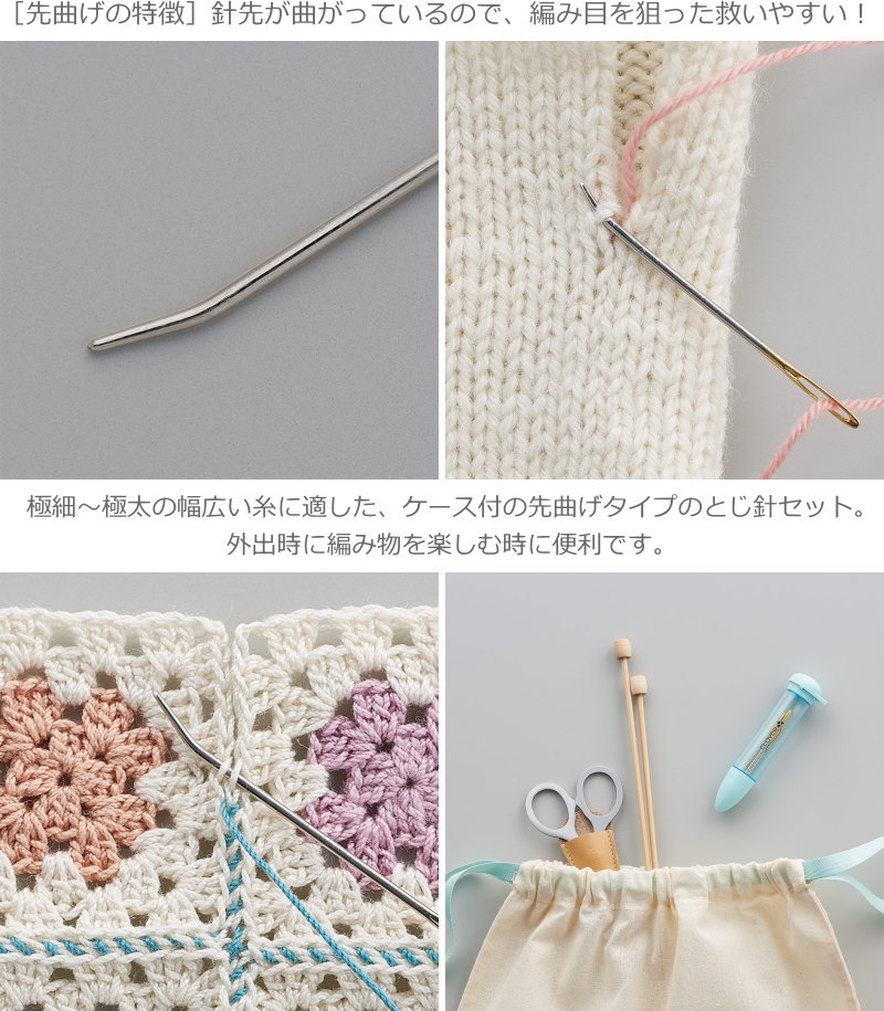 20%OFF!『とじ針セット(プチ)・≪先曲げ≫』(3本セット)極細~極太用【セット内容】とじ針ケース、とじ針(No.12・No.15・No.18:各1本)【材質】針:鋼(ニッケルメッキ)・ケース:ポリプロピレン・ポリスチレン・ポリエチレン