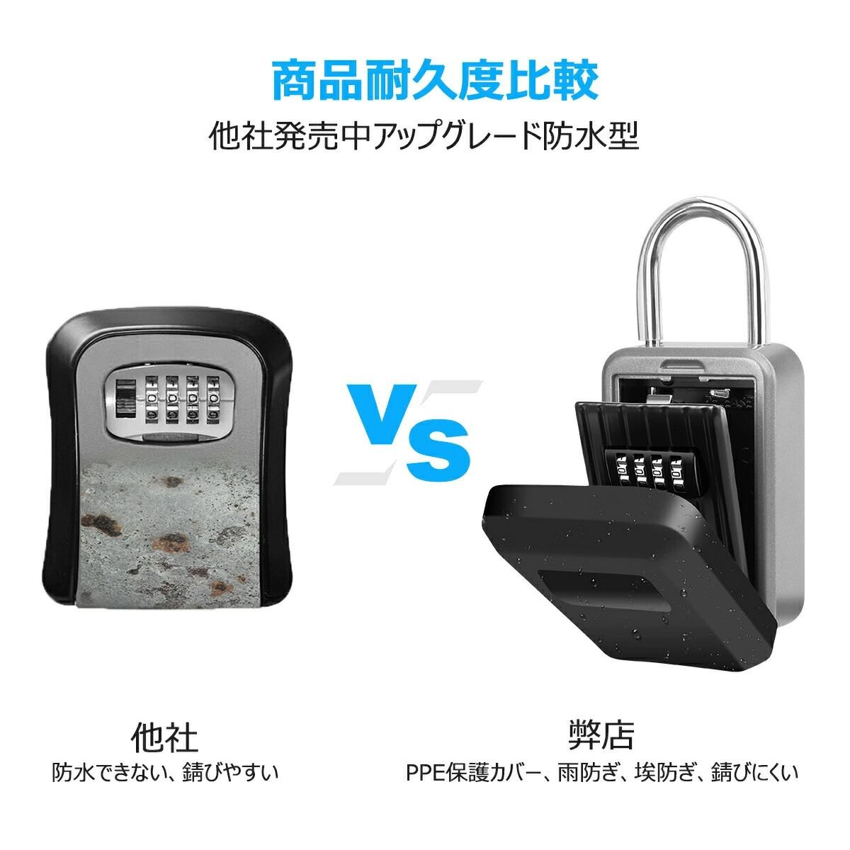 ●防水カバー付きのダイヤルロック式キーボックス(南京錠)です。雨などに濡れてしまっても安心の防水カバーが付いておりますので、屋外に設置しておくことも可能となっております。また4桁のダイヤル式のロックとなっておりますので、どなたでも簡単に設定が行えます。 ※完全防水ではございません。 ●大容量タイプとなっておりますので、家の鍵や自転車の鍵、ガレージの鍵などを入れておくと、様々な鍵を持ち歩く必要がなくなり身軽に外出ができます。鍵だけでなく、USBやカードなど小さな貴重品を収納しておくのにも便利なアイテムとなっております。 ●キーボックス本体は強度の高いアルミニウム合金で作られているため、耐久性も抜群です。万が一、何らかの衝撃が加わっても簡単に壊れる心配もございません。 ●壁にかけられる仕様となっておりますので、場所を選ばずに設置することができます。またU環部をドアハンドルなどに掛けておくと、壁に穴を開けたりする必要もなくなるので賃貸にお住まいの方にもおすすめです。 免責事項 ※写真撮影の照明や、画像処理の加減により実物の色味と若干異なる場合もございます。 あらかじめご了承の上ご購入下さい。 ※ロットによって、商品の仕様がご通知なく変更される可能性がございますので、予めご了承のうえ、ご注文ください。 当店が細かい仕様の変更が原因での返品は承りません。 【購入希望の方は必ずお読みください】 ●当商品はアマゾン倉庫などの委託倉庫から発送させて頂く可能性がございます。 ●委託倉庫から発送の為、注文確定後の注文内容の変更は対応しかねます。 ●当商品は配送時間指定不可です。 ●こちらの商品はいかなる理由があっても、良品返品は承りません。万が一初期不良があった場合は、当店までご連絡ください。不良品の場合は直ちに交換または返品返金対応をいたします。 以上、あらかじめご了承ください。●防水カバー付きのダイヤルロック式キーボックス(南京錠)です。雨などに濡れてしまっても安心の防水カバーが付いておりますので、屋外に設置しておくことも可能となっております。また4桁のダイヤル式のロックとなっておりますので、どなたでも簡単に設定が行えます。 ※完全防水ではございません。 ●大容量タイプとなっておりますので、家の鍵や自転車の鍵、ガレージの鍵などを入れておくと、様々な鍵を持ち歩く必要がなくなり身軽に外出ができます。鍵だけでなく、USBやカードなど小さな貴重品を収納しておくのにも便利なアイテムとなっております。 ●キーボックス本体は強度の高いアルミニウム合金で作られているため、耐久性も抜群です。万が一、何らかの衝撃が加わっても簡単に壊れる心配もございません。 ●壁にかけられる仕様となっておりますので、場所を選ばずに設置することができます。またU環部をドアハンドルなどに掛けておくと、壁に穴を開けたりする必要もなくなるので賃貸にお住まいの方にもおすすめです。 免責事項 ※写真撮影の照明や、画像処理の加減により実物の色味と若干異なる場合もございます。 あらかじめご了承の上ご購入下さい。 ※ロットによって、商品の仕様がご通知なく変更される可能性がございますので、予めご了承のうえ、ご注文ください。 当店が細かい仕様の変更が原因での返品は承りません。 【購入希望の方は必ずお読みください】 ●当商品はアマゾン倉庫などの委託倉庫から発送させて頂く可能性がございます。 ●委託倉庫から発送の為、注文確定後の注文内容の変更は対応しかねます。 ●当商品は配送時間指定不可です。 ●こちらの商品はいかなる理由があっても、良品返品は承りません。万が一初期不良があった場合は、当店までご連絡ください。不良品の場合は直ちに交換または返品返金対応をいたします。 以上、あらかじめご了承ください。