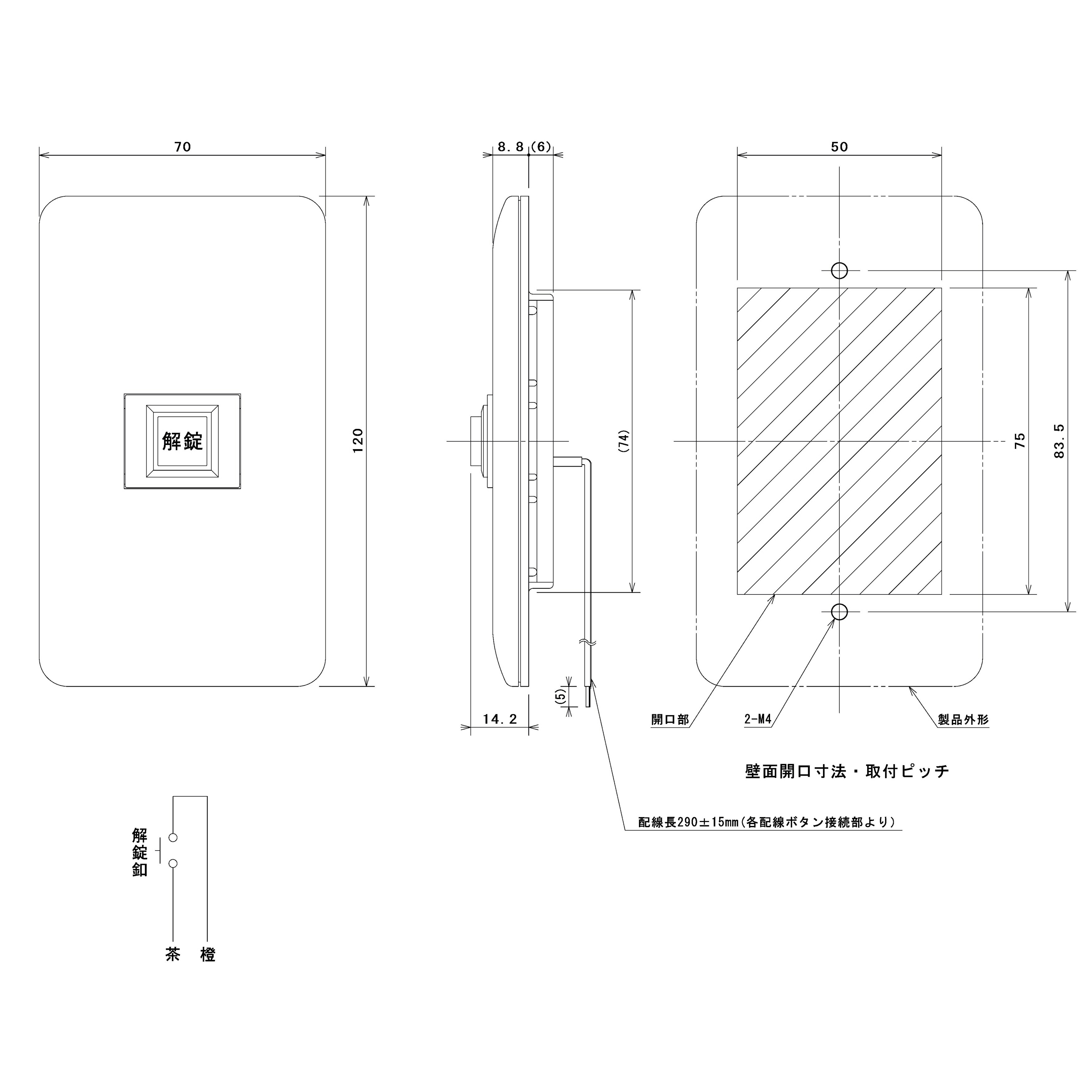 出入口や玄関まで行かずに、事務室や管理室など離れた場所から電気錠操作や状況の確認ができます。電気錠の種類や使用状況に応じて、使い分けが可能です。 商品仕様 材質 樹脂 重量 約70g 電源 電気錠制御盤より供給 使用環境温度 0℃~40℃(結露なきこと) 設置場所 屋内 プレート Panasonic コスモシリーズ ワイド21 ラウンドプレート WTF7001W ホワイト(マンセル 10Y9/0.5 近似色) ブランクチップ Panasonic WN3020SW 取付枠 Panasonic WTF3710K 解錠ボタン 非照光式スイッチ:緑色 モーメンタリ動作
