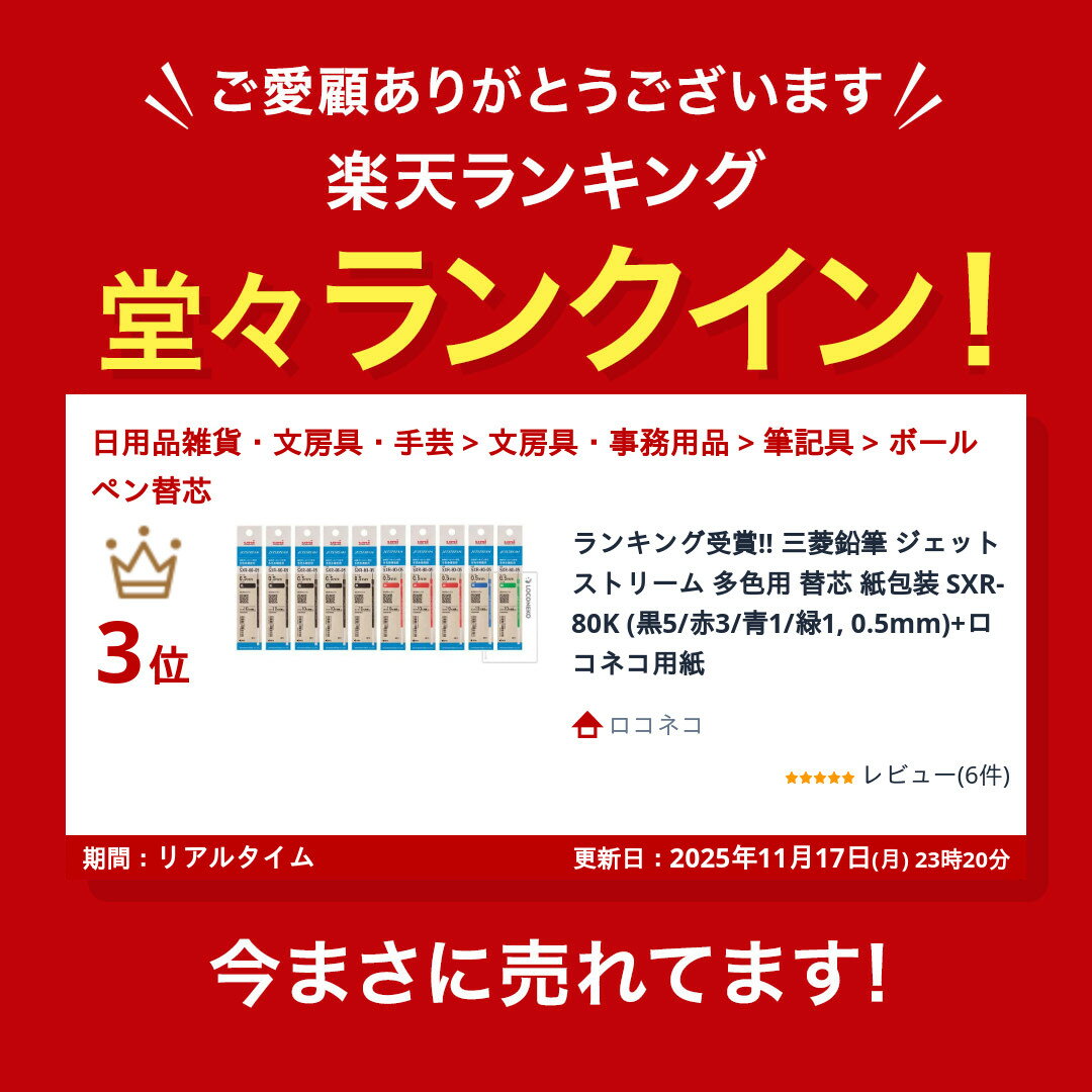 ランキング受賞!! 三菱鉛筆 ジェットストリーム 多色用 替芯 紙包装 SXR-80K (黒5/赤3/青1/緑1, 0.5mm)+ロコネコ用紙