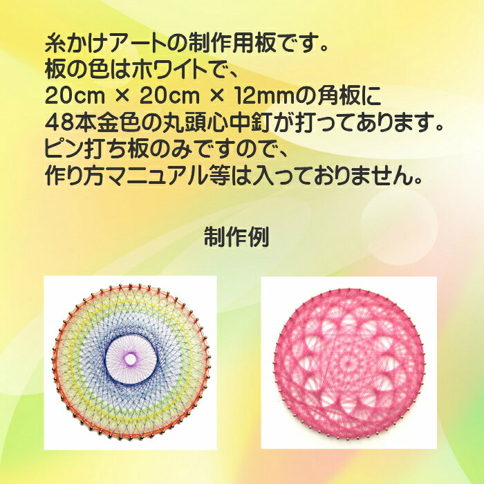 糸かけアート制作用板 20cm角 板色 ホワイト(白色)48ピン 釘打ち 材料 板 台 糸かけ曼荼羅 糸掛け曼荼羅 糸曼荼羅 糸かけ花曼荼羅 ストリングアート