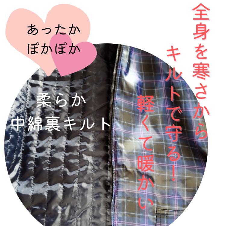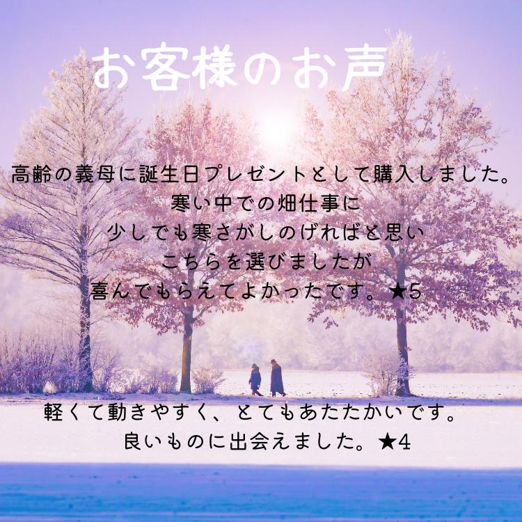 素材ポリエステル100%(撥水加工) 防水加工はされておりません。 表生地:ポリエステル100% 中綿 :ポリエステル100% 裏生地:ポリエステル100%サイズM/L/LL/3L 実寸サイズは商品ページをご覧ください。タグ表示対象身長 154〜162 バスト M79-87 L86-94 LL93-101 3L100-108 ウエスト M64-70 L69-77 LL77-85 3L85-93カラー青系チェック ブルー・紺・落ち着いたカラー裏地裏地あり(中綿キルト)商品の特徴【上着】 ●フード付き ●左右大型ふた付きポケット(マジックテープ付き) ●手首:ゴム入り ●裾 :ゴムなし 【ズボン】 ●左右ポケット付き(手がすっぽり入る大きさ) ●後左ポケット1つ ●ウエスト:ゴム入り ●裾:ゴムなし(ストレート)こんなお仕事・ 場面で農業 酪農水産 加工場 林業 冷蔵施設 農作業 外作業 雪かき スノーラック アノラック アウター コート アウトドア ギフトとしてもお母さん・おばあさんの誕生日・クリスマス・お正月のプレゼントにも喜ばれます。 注意事項洗濯により撥水加工の効果が少なくなりますのでご注意ください。生産国中国 素材ポリエステル100%(撥水加工) 防水加工はされておりません。 表生地:ポリエステル100% 中綿 :ポリエステル100% 裏生地:ポリエステル100%サイズM/L/LL/3L 実寸サイズは商品ページをご覧ください。タグ表示対象身長 154〜162 バスト M79-87 L86-94 LL93-101 3L100-108 ウエスト M64-70 L69-77 LL77-85 3L85-93カラー青系チェック ブルー・紺・落ち着いたカラー裏地裏地あり(中綿キルト)商品の特徴【上着】 ●フード付き ●左右大型ふた付きポケット(マジックテープ付き) ●手首:ゴム入り ●裾 :ゴムなし 【ズボン】 ●左右ポケット付き(手がすっぽり入る大きさ) ●後左ポケット1つ ●ウエスト:ゴム入り ●裾:ゴムなし(ストレート)こんなお仕事・ 場面で農業 酪農水産 加工場 林業 冷蔵施設 農作業 外作業 雪かき スノーラック アノラック アウター コート アウトドアギフトとしてもお母さん・おばあさんの誕生日・クリスマス・お正月のプレゼントにも喜ばれます。注意事項洗濯により撥水加工の効果が少なくなりますのでご注意ください。生産国中国雪深い北国の 当店からのご提案当店は東北の雪深い地域にあるのですが、 一気に冷え込んだ秋、爆発的に売れる 北国の農家さんの強い味方「防寒中綿キルトヤッケ」のご案内です中綿・裏キルト素材!冬素材暖か・ゆったり大きめレディースヤッケ上下セット農作業はもちろんですが、冬のちょっとした外作業にも ぴったりなおしゃれな柄ヤッケです。嬉しいお声が届きました防寒ヤッケって北国の方の為のもの? と初めは思っておりました。 北は北海道から南は沖縄まで全国各地の方 からご注文を頂いております。 少しでも冬や寒い場所でのお仕事の お役に立ちますように・・・軽くて暖かい・・・心もぽかぽか体の芯から冷えてしまうと 身体もなかな動かない・・・。 そうなる前に全身を寒さから 中綿キルトヤッケの上着とズボンで守りましょう。 少しだけおしゃれに 気持ちも上がり心もぽかぽか。 大人女性の為のヤッケです。 中綿と聞くと分厚いのかな?重いのかな? と思われる方も多いかもしれません。 しかし、意外と「厚み」はありません。 そして中綿なのに意外に軽いのです。 40代50代60代70代80代、幅広い年代の方に動きやすい ゆったり着心地柔らかく、軽い着心地なので 動きやすい 長年プロ農家さんに愛されている 農作業用のヤッケ。 しっかりとした生地・軽さ・動きやすさを 重視し、機能はしっかりと着丈長い!お尻が隠れます着丈が長く、お尻がスッポリと 隠れます。 もちろんしゃがんでも背中が出たり、 中に着ている上着が出ることもなく ストレスフリーで仕事に集中できますね 重ね着しても着心地の良い大きめに作られています 厚着をしても大丈夫フードも中綿寒さや風から身体を守るフード 帽子がついているので 急な雪・雨にも対応できます。 撥水加工はされていますが 防水加工はされておりません。左右に大きめの蓋付ポケット。 てのひらが入る大きさです上着の袖口は袖ゴムです。 腕まくりをするときにも便利です股上の深いズボン股上も深いので お腹周りの気になる ご婦人の方にも人気です。 ウエストゴムもゆったりパンツには 前脇に左右1つずつの ポケット。 右の後にも大きなポケット実寸サイズをご確認くださいませ【試着感想】 40代・身長160センチ・体重50キロ・9号サイズ Mサイズでちょうど良かったです。 Lサイズは「脇部分」「身ごろの幅」「ズボンの幅」などが余ってしまい、動きづらさを感じました。【試着感想】 50代・身長155センチ・小柄 ゆったりが好きなのでLサイズを選びます。 上着の袖は少し長く感じますが、腕まくりでOK。 ズボンも「長すぎる」ということはありませんでした。防寒用ヤッケは寒い場所で活躍しますヤッケは農作業に従事される農家さんの 必須アイテム。 でも、酪農・水産加工場で着用される方も多い様子。 また、寒冷地に限らず、冷蔵施設などでのお仕事 にもお役に立てるはず。 上着を羽