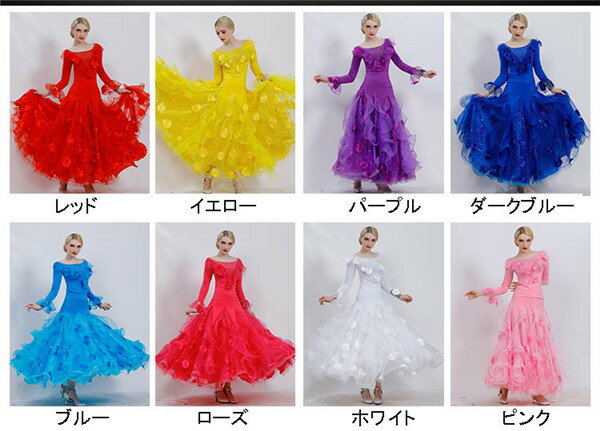8カラー 社交ダンスドレス 2点セット 初心者 社交ダンス衣装 長袖 ボールルーム衣装 練習服 演出服 演奏会 スタンダード 豪華 大合唱 開場ドレス ワルツ 競技着 演出用 舞台・ 発表会 上着 スカート 赤 黄 青 紫 ピンク 白 S M L XL 2XL 3XL