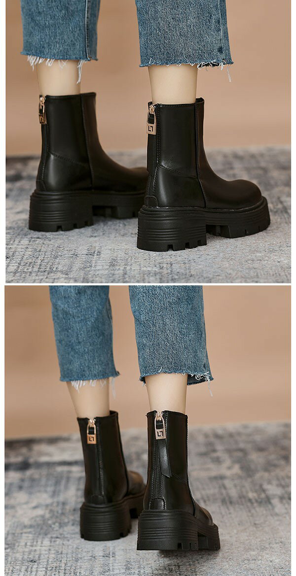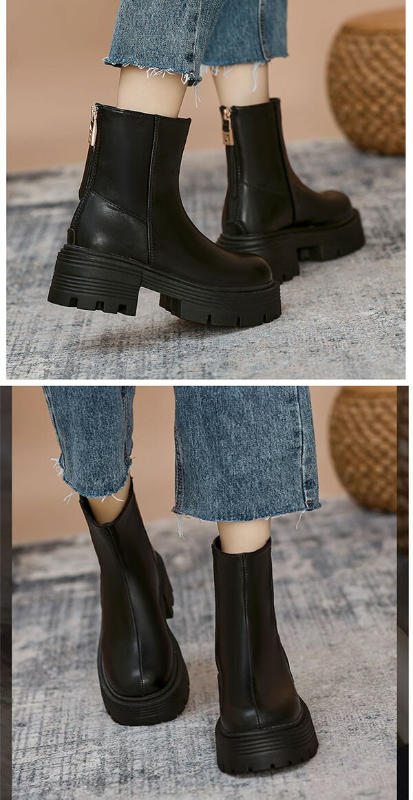 ショートブーツ 厚底 歩きやすい チャンキーヒール 美脚 バックジップ 痛くない 厚底ブーツ 疲れない ショート ブーツ ミドルブーツ 春ブーツ 幅広 スクエアトゥ 黒 通勤通学 22.5 23.0 23.5 24.0 24.5 25.0