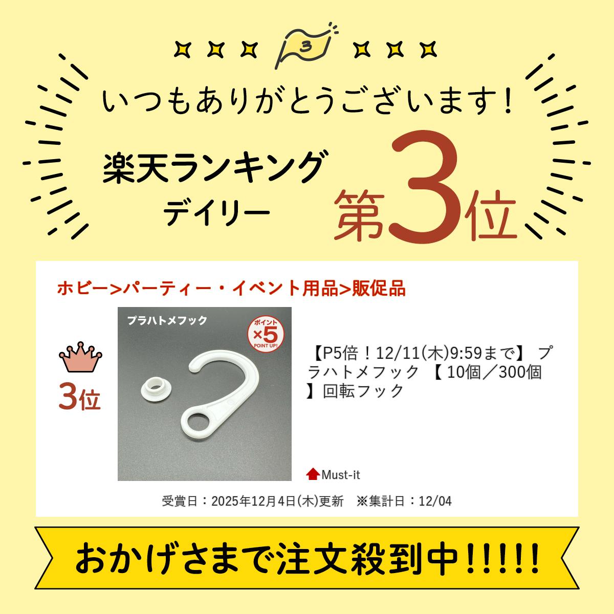 商品情報サイズ全長:81mm幅:52mm適応穴径:φ13材質ポリプロピレンプラハトメフック 【 10個/300個 】回転フック ハトメ フック プラ ポリ 回転 10個〜 300個 フック部分が回転するので、梱包がコンパクトになります。 5 まとめ買いの方はこちら← 5 シールフック 10個セット 送料込み↓ フック用カード差し 5個〜↓ Sカン SA-105 S字フック10個〜↓ フック一覧はこちら↓