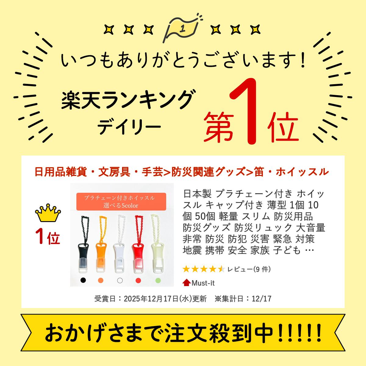 日本製 プラチェーン付き ホイッスル キャップ付き 薄型 1個 10個 50個 軽量 スリム 防災用品 防災グッズ 防災リュック 大音量 非常 防災 防犯 災害 緊急 対策 地震 携帯 安全 家族 子ども 景品 プレゼント ランキング受賞 安心の日本製 オール樹脂 水に濡れてもサビない スリム型 プラチェーン付ホイッスル キャップ付 OPP袋に個包装 プレゼントにもおすすめ 簡単 取り付け プラチェーン 5 【5色セット1000円送料無料】日本製 プラチェーン付き ホイッスル↓ 蓄光ホイッスルアルファベット1個〜↓ 【新色入荷】日本製 ホイッスル 薄型 キャップ あり/なし 10色 1個↓ ホイッスル一覧はこちら↓