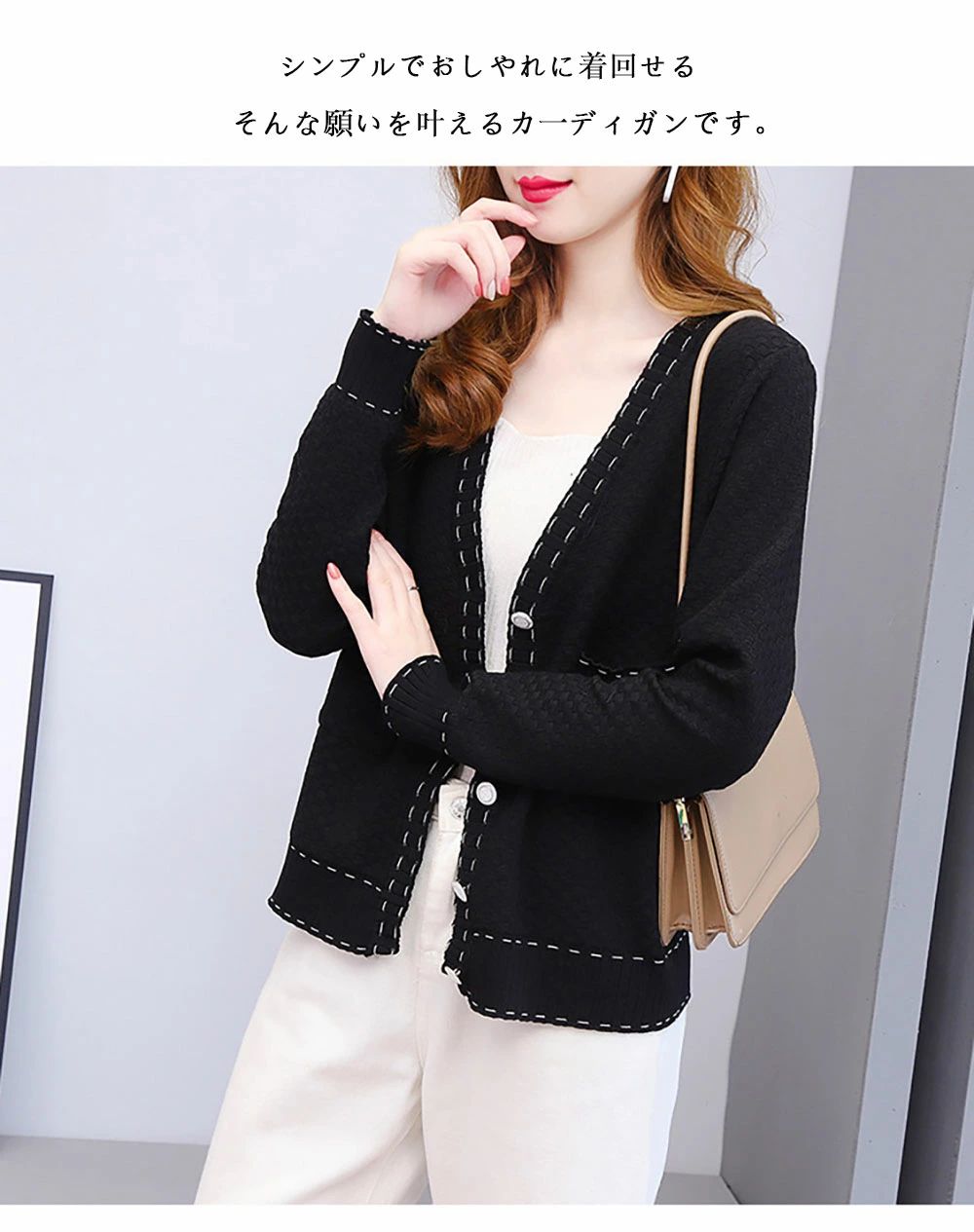 カーディガン レディース 春 秋 薄手 羽織り きれいめ 長袖 Vネック バイカラー 黒 白 通勤 オフィス オフィスカジュアル トップス おしゃれ シンプル 韓国 体型カバー 大人カジュアル 30代 40代 50代 日焼け対策 羽織 通気性 お出かけ 冷房対策