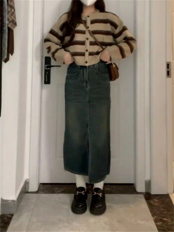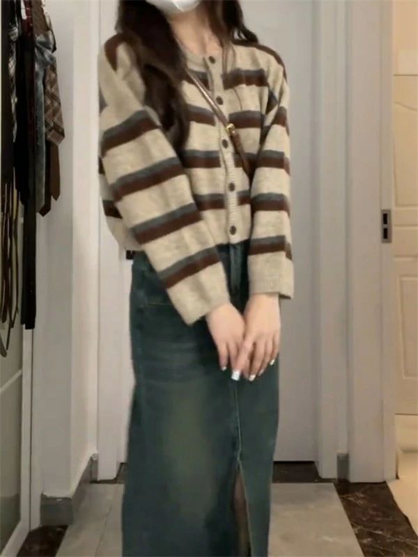 ニット セーター カーディガン レディース 春 秋 冬 ゆったり ボーダー柄 シンプル トップス 長袖 前開き ゆるニット おしゃれ カジュアル dn054c6c6x0