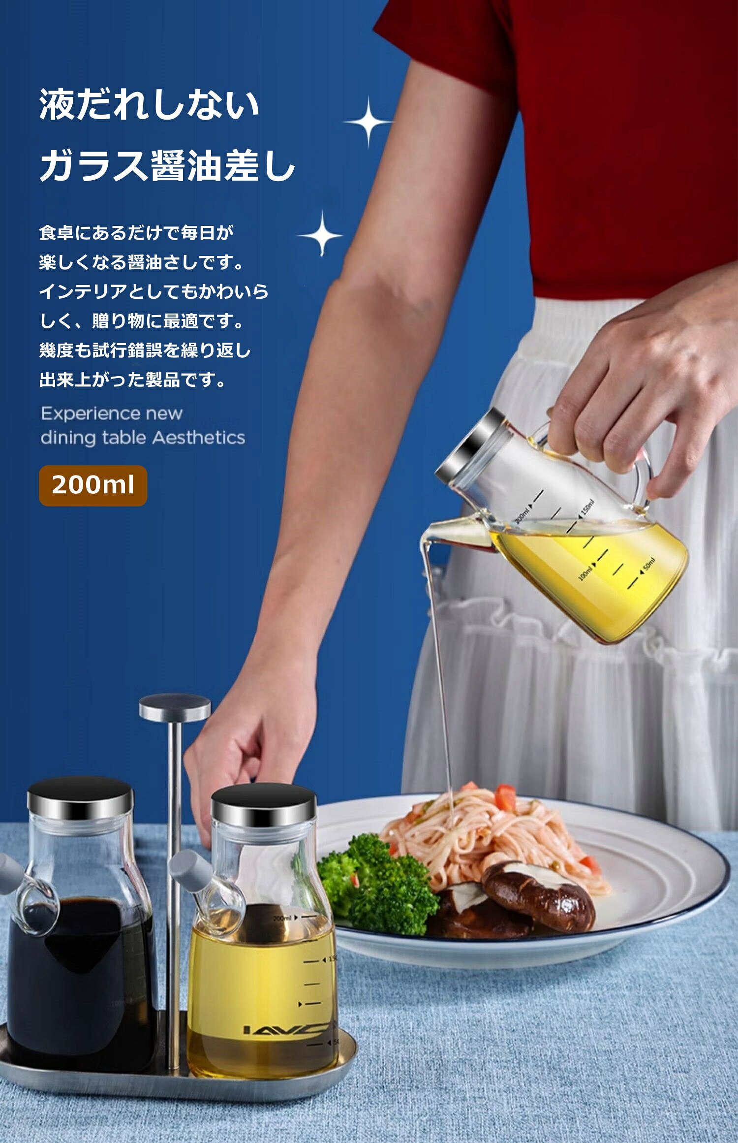 ずっと使えるお醤油差し 日本の醤油は味も色も様々。 お醤油の鮮度を保つには、温度を低めに保つこと、空気に触れさせすぎないことが大切とのこと。 使う分だけお醤油差しに移すことで、ボトルのお醤油を新鮮に保てます! 食卓にあるだけで毎日が楽しくなる醤油さしです。 佇まいもさることながら、においや色が染み込みにくく中身が見えて、 液だれしにくい使いやすさも魅力です。シンプル なデザインのなかから、ひったりのものをお手元に。 インテリアとしてもかわいらしく、贈り物に最適です。 幾度も試行錯誤を繰り返し出来上がった製品です。