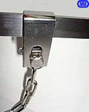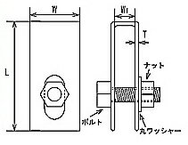 【仕様】・材 質:ステンレス(SUS304) 【寸法(mm)】 L:55W:25W1:15T:2捻径:M-8適用の高さ:18~38weight(g):63 ※適用の高さはグレーチングに適用しうる寸法です。 【商品の機能および特長】 ●何枚か並んだ網型のグレーチング(溝蓋)どうしをこのクリップで挟んで、跳ね上げ防止や盗難防止に役立ちます。 ●ステンレス製なので錆にも強く、美しい光沢で景観を損ねません。 ●この他にボルトで止めるガッチリタイプや、それと併用も出来るシャックル付きアンカー等もございます。
